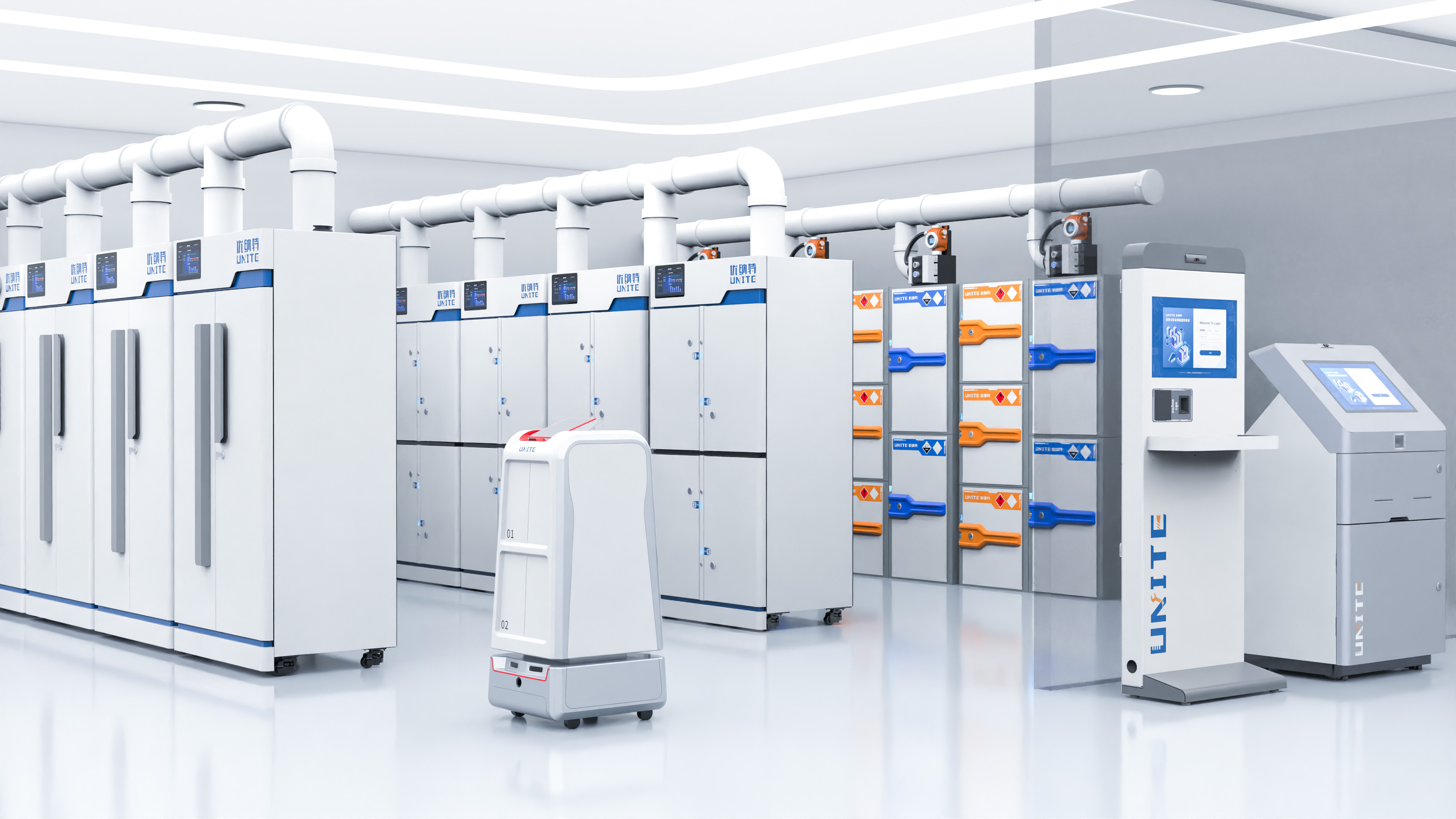 浙江優(yōu)納特自主創(chuàng)新研發(fā)矩陣式物聯(lián)儲(chǔ)存艙,涵蓋試劑危化品、標(biāo)準(zhǔn)品/標(biāo)準(zhǔn)菌、生物樣本、數(shù)字孿生數(shù)據(jù)、自動(dòng)化無人實(shí)驗(yàn)室、智慧實(shí)驗(yàn)室安全、環(huán)境監(jiān)測(cè)、儀器設(shè)備等八大平臺(tái)。主營(yíng)硬件包括:智能試劑安全柜,智能危化品柜,智能試劑柜,危化品安全柜,防爆安全柜,智能易制毒安全柜,智能防火安全柜,智能防爆安全柜,試劑冷藏柜,無人實(shí)驗(yàn)室自動(dòng)化設(shè)備,自動(dòng)化機(jī)器人,自動(dòng)化轉(zhuǎn)運(yùn)機(jī)器人,機(jī)器臂,智慧無人實(shí)驗(yàn)室,全自動(dòng)生物樣本庫(kù),標(biāo)準(zhǔn)品常溫柜,標(biāo)準(zhǔn)品冷藏柜,標(biāo)準(zhǔn)品雙控溫柜,智慧實(shí)驗(yàn)室管理系統(tǒng),實(shí)驗(yàn)室信息管理系統(tǒng),實(shí)驗(yàn)室物資管理系統(tǒng),實(shí)驗(yàn)室安全教育系統(tǒng),無人實(shí)驗(yàn)室智慧化管理。通過軟硬件結(jié)合,為實(shí)驗(yàn)室物資提供物理安全防護(hù)的同時(shí)掌握物資存取、定位、統(tǒng)計(jì)等全生命周期動(dòng)態(tài)。
